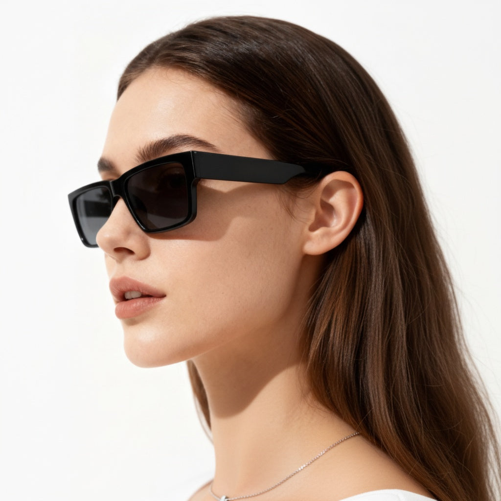 Featuring a unique magnetic logo on the side, it lets you effortlessly match your glasses to your outfit. The glasses and hinges are worked by hand in to the frame, so it's truly a piece of art. This black model has got a nice shiny look.